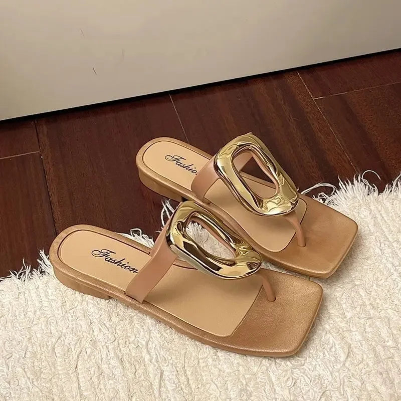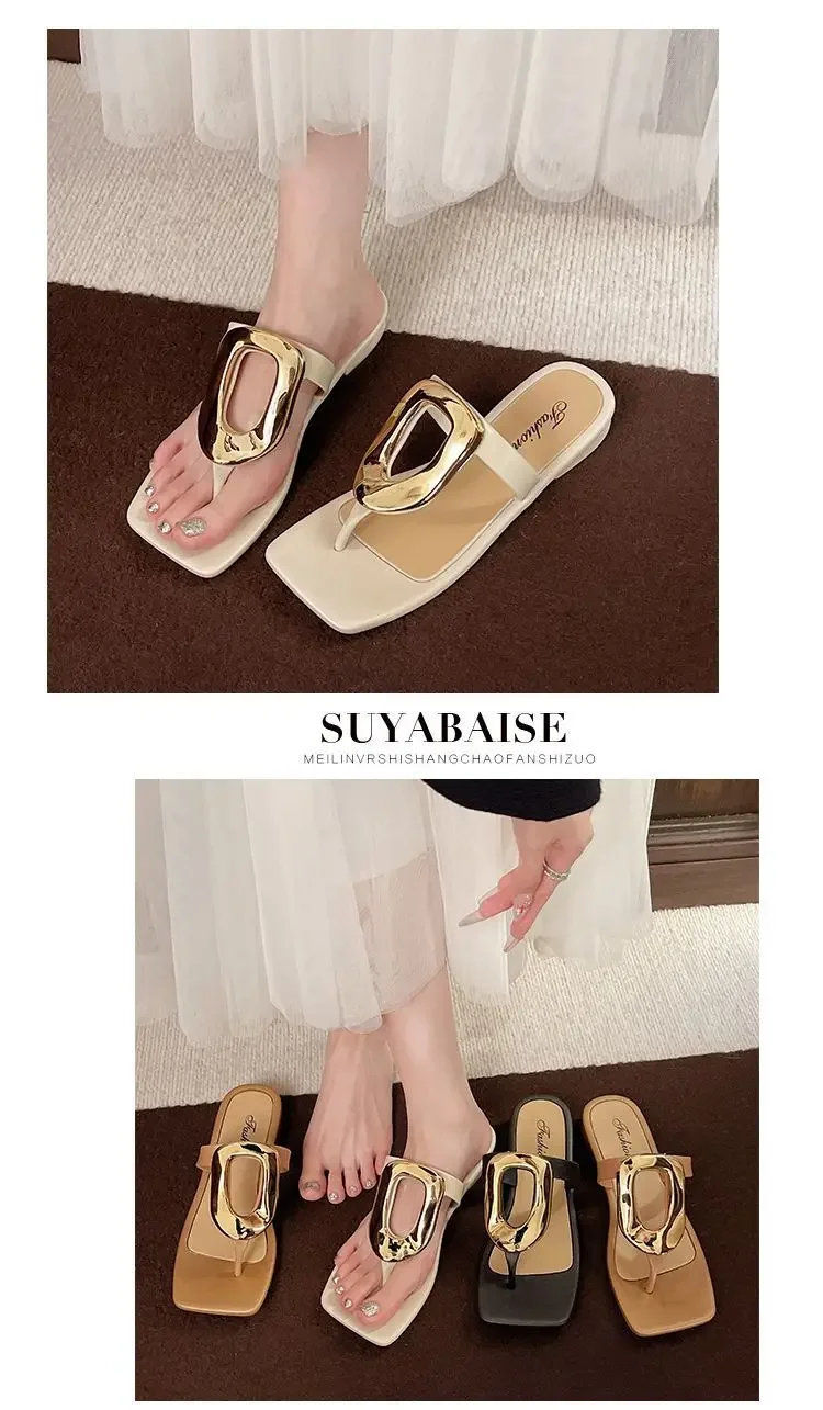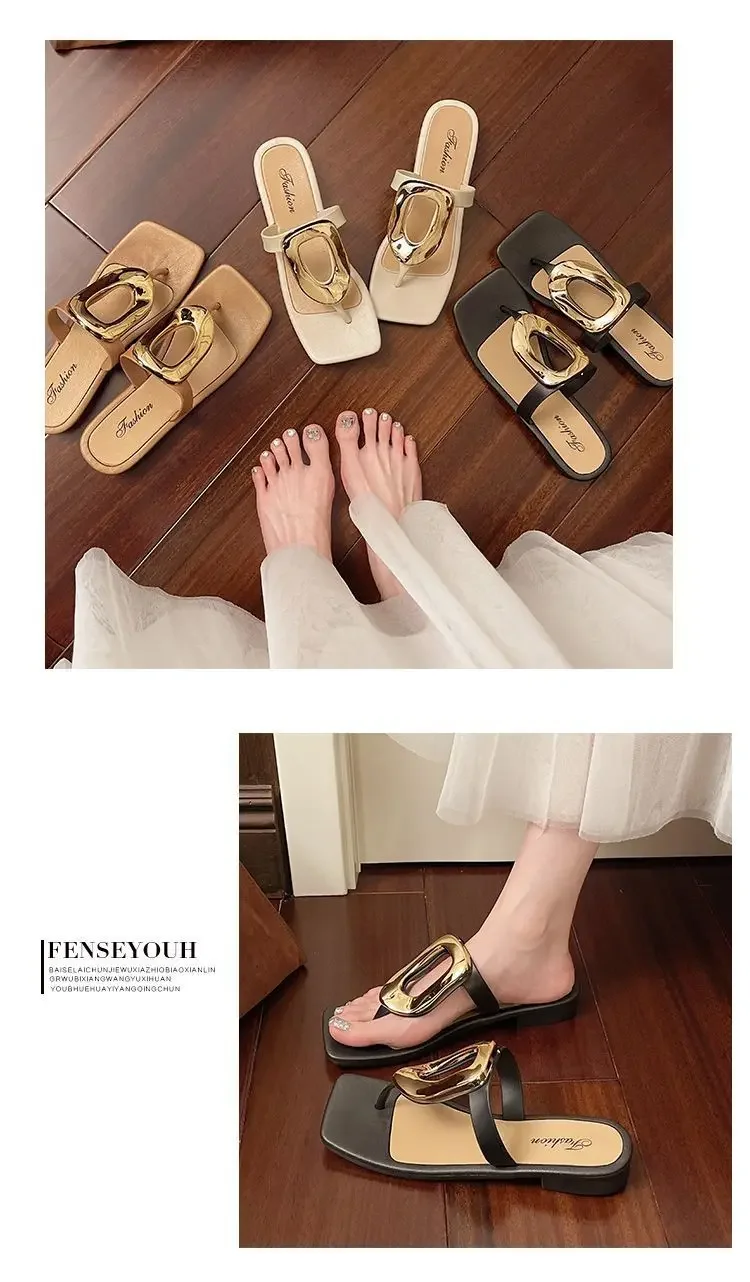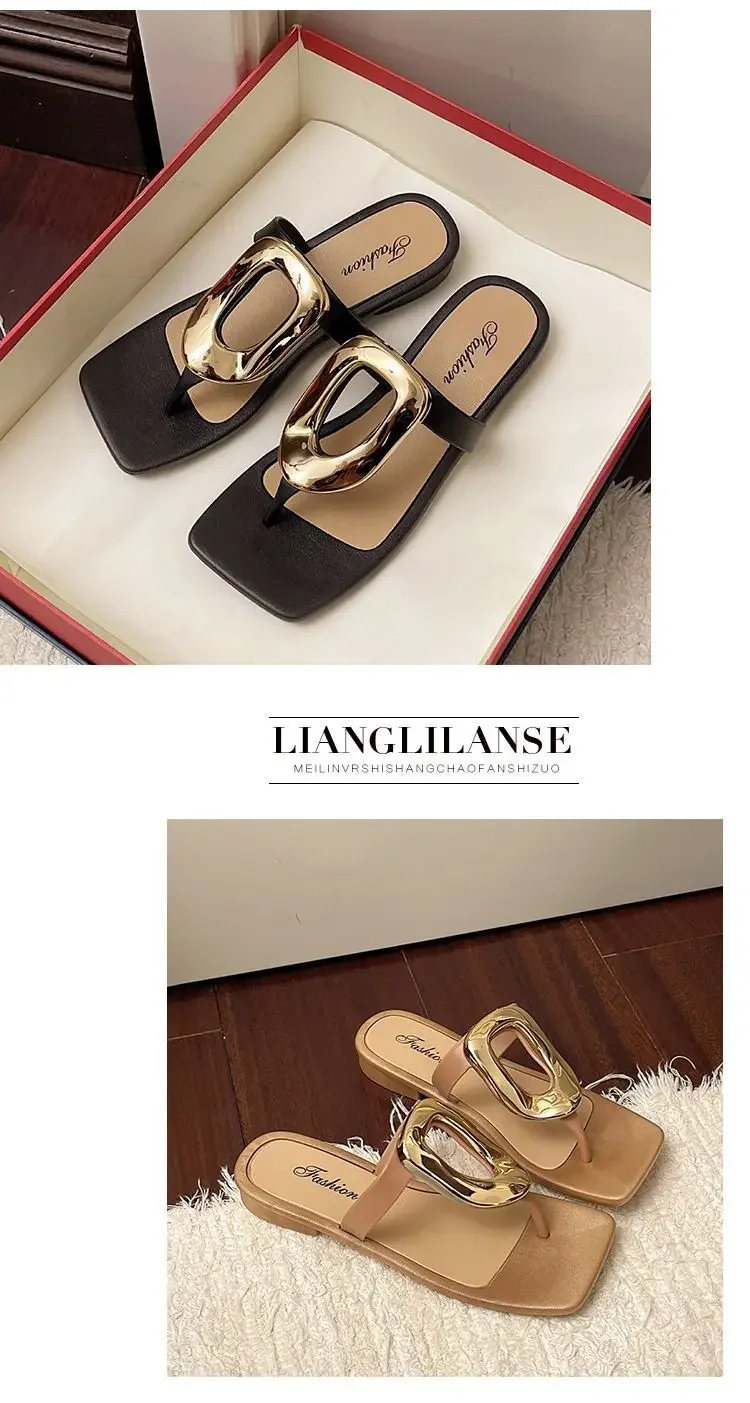 Flat Bottom Sandals Breathable Open Toe Fashionable Casual Metal Buckl