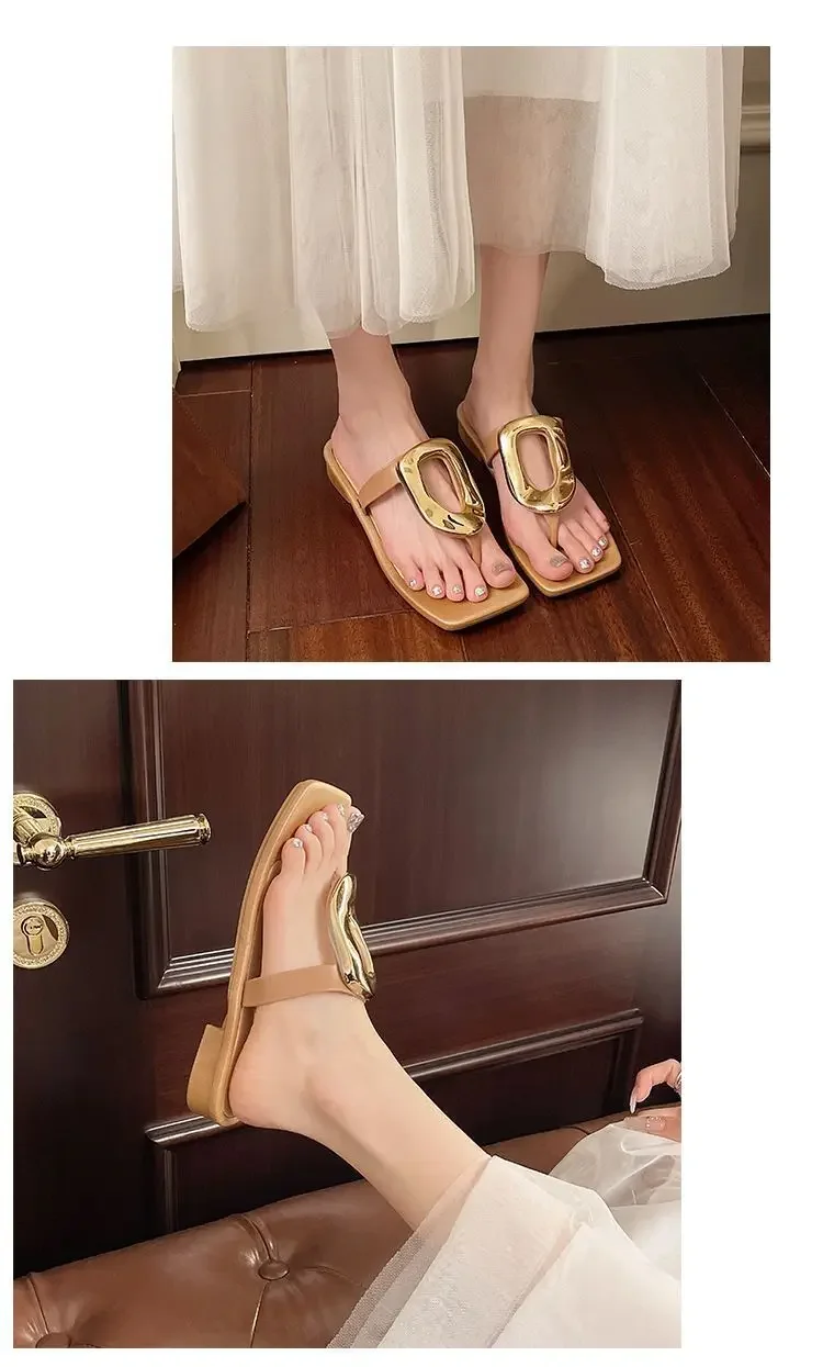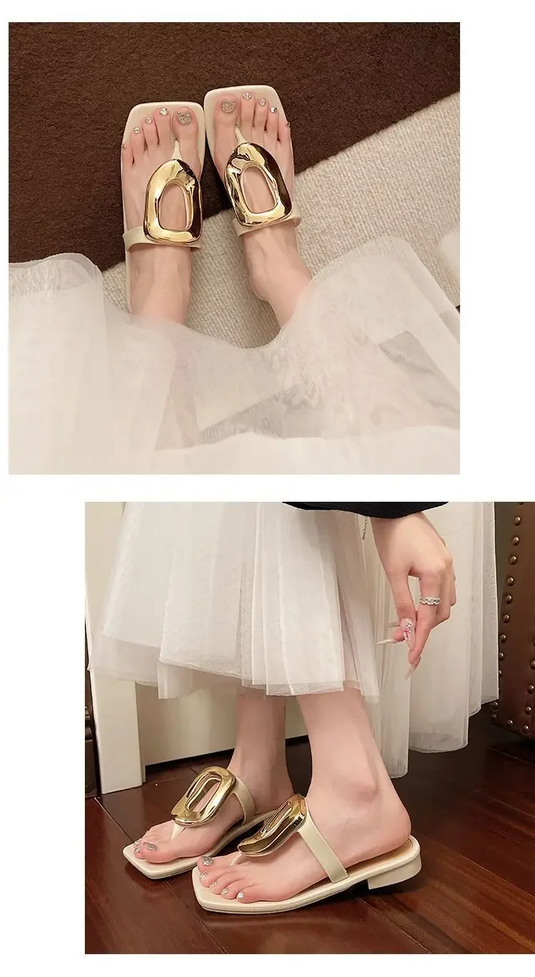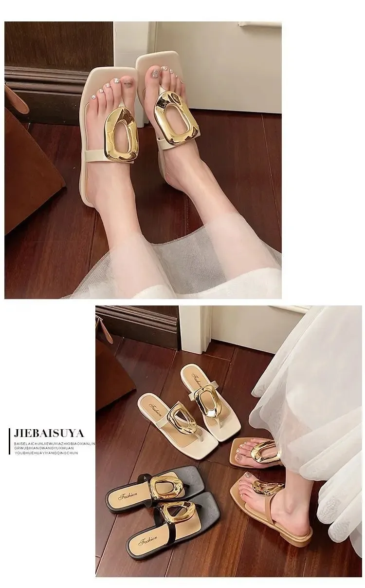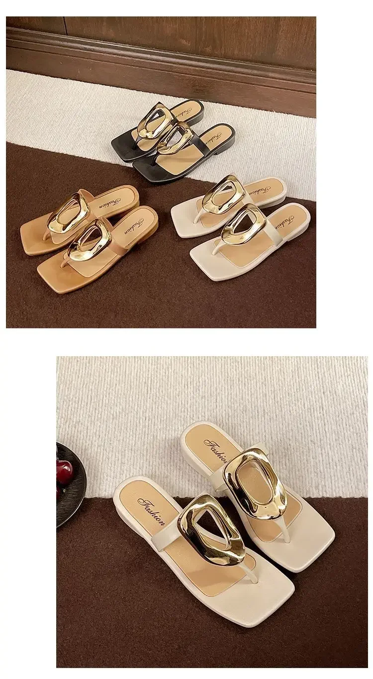 Flat Bottom Sandals Breathable Open Toe Fashionable Casual Metal Buckl