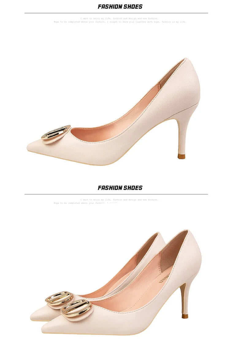 Sexy Women's Stiletto High Heels Shallow Mouth Pointed Toe Metal Buckle Party Single Shoes