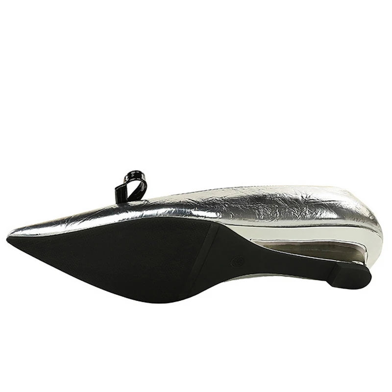 Elegant women's wedge heels featuring a pointed toe design and a delicate butterfly-knot detail, perfect for sophisticated occasions.