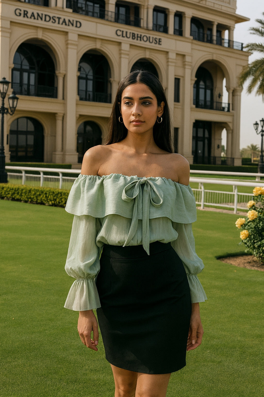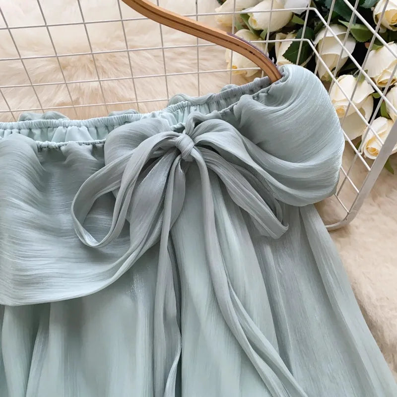 Elevate your wardrobe with this refined off-shoulder blouse that seamlessly blends French elegance with contemporary design. Crafted from flowing mesh fabric, this versatile piece features a relaxed silhouette that flatters effortlessly. The niche aesthetic and gentle styling make it perfect for creating sophisticated looks, whether dressed up for special occasions or paired casually with your everyday essentials. A timeless addition to any fashion-forward collection.
