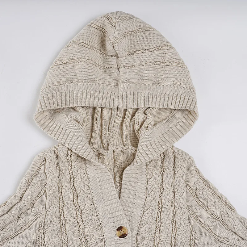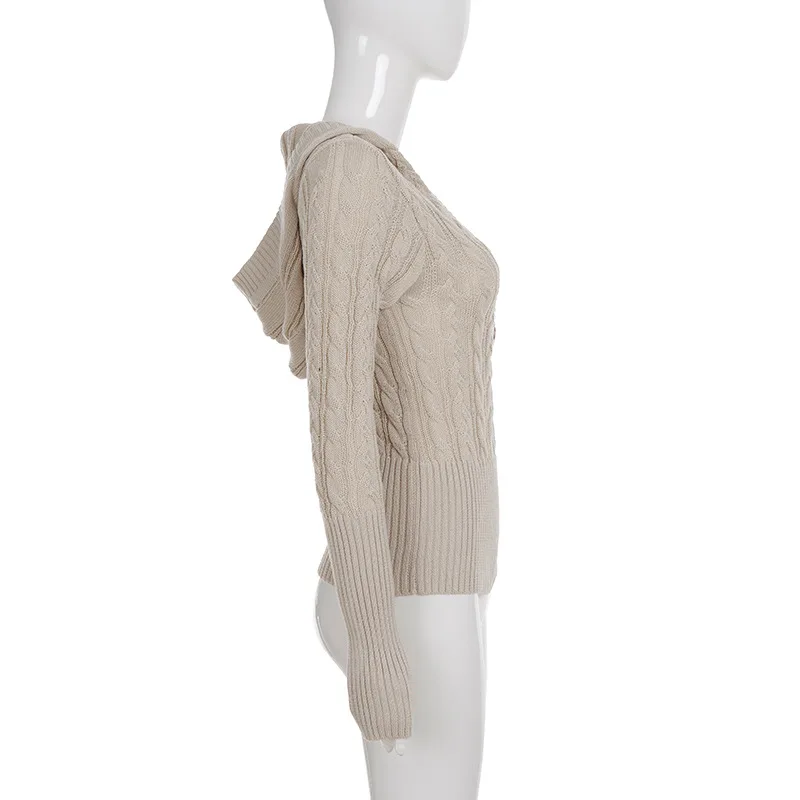 Embrace understated elegance with this refined hooded cardigan, expertly crafted for the modern woman seeking timeless style. Featuring a luxurious cable-knit construction and substantial thickened fabric, this piece delivers both warmth and sophistication. The flattering waist-cinching silhouette creates a polished silhouette, while three-button closure and vintage-inspired design elements add distinctive character. Perfect for layering over casual basics or dressing up your everyday wardrobe with effortless grace.