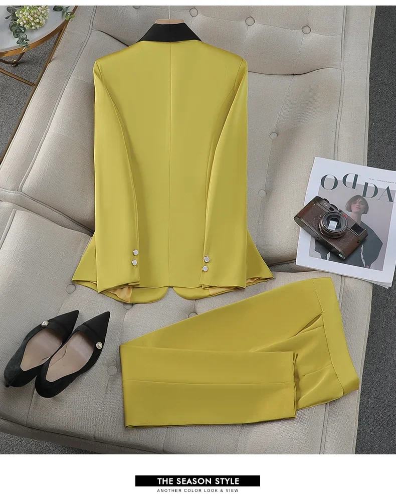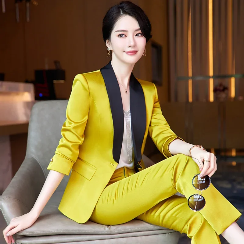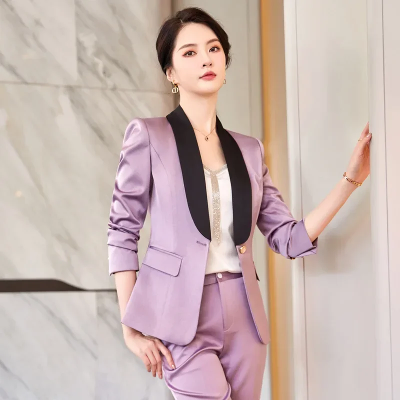 • High-End Business Wear : This satin suit is perfect for the professional woman, offering a high-end look that exudes confidence and sophistication.
