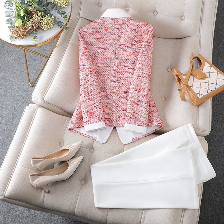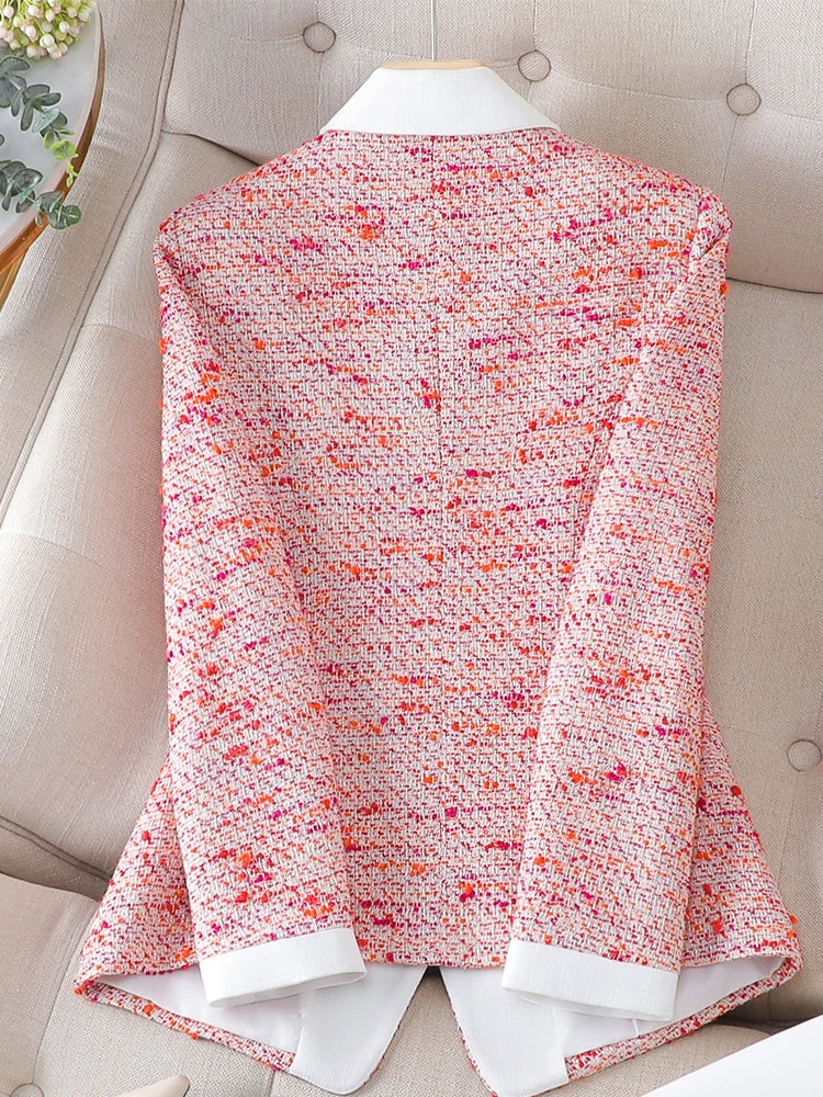 Fashion Red Plaid Ladies Blazer Jacket Women Long Sleeve Single Breast