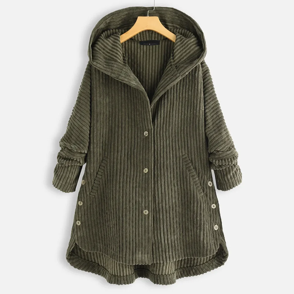 Fashionable Casual Cotton Jacket Women's Coat Hooded Corduroy Women's