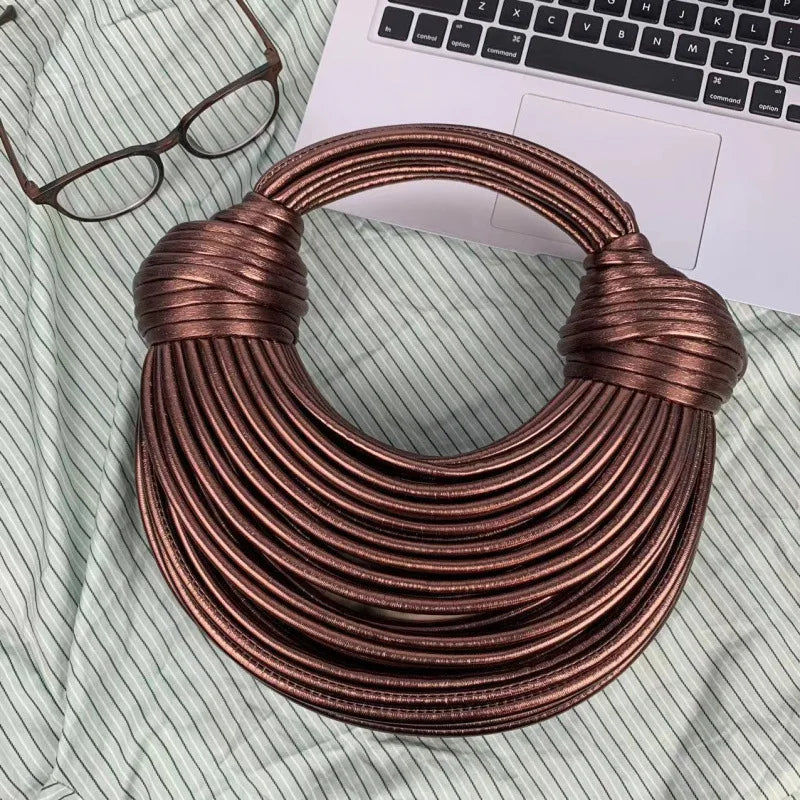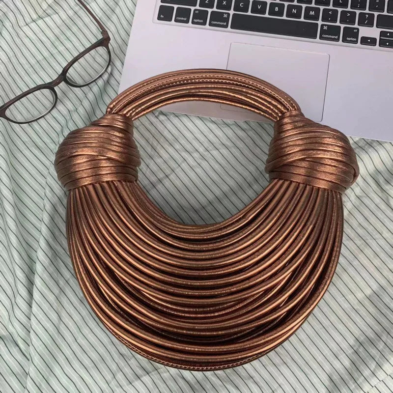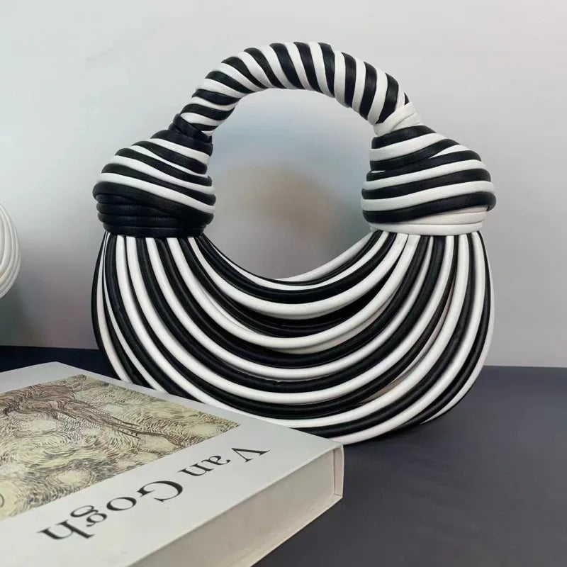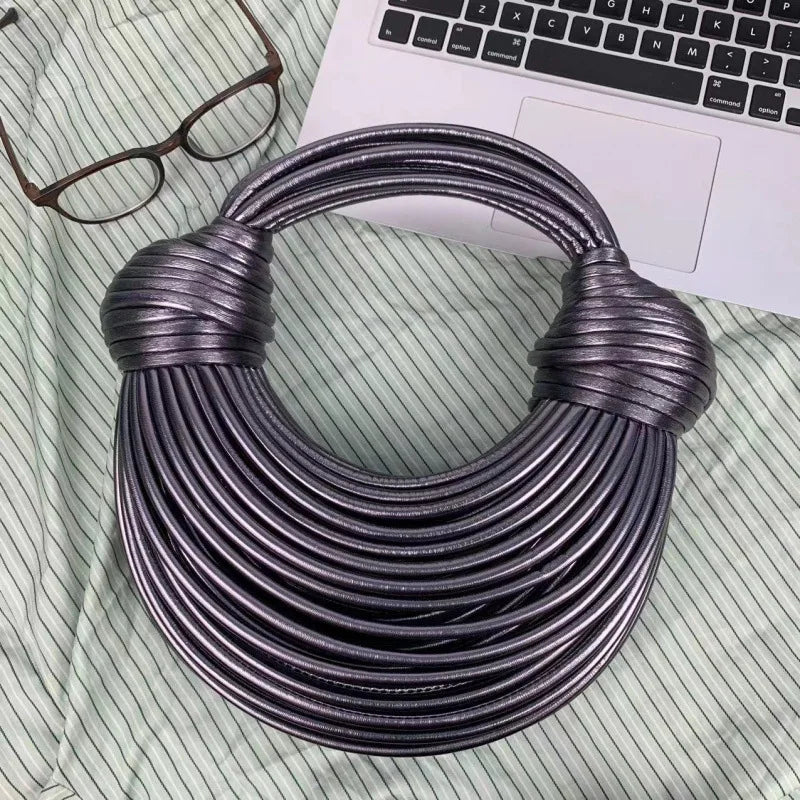 Elevate your everyday carry with this artfully crafted hand-knitted shoulder bag, where contemporary minimalism meets playful design. Featuring a distinctive knotted silhouette inspired by modern urban aesthetics, this versatile piece seamlessly transitions from day to evening. Crafted from durable PU material, it offers both sophistication and practicality for the discerning woman who values style without compromise.