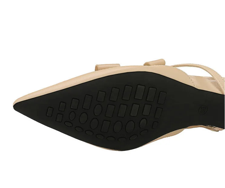 French Wedge Heel Pointed Head Sandals Versatile Bow Medium Heel Half