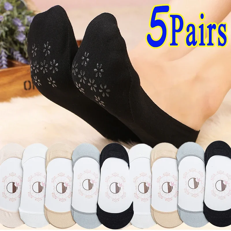 Invisible Boat Socks Women Girls Thin Breathable Cotton Sock Solid Color High Heels Shoes Non-slip Silicone Short Socks