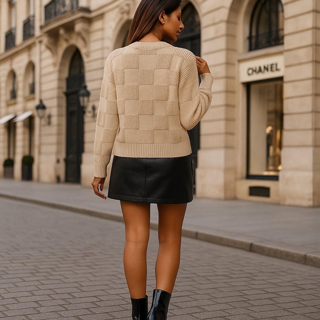 Women's loose-knit sweater combines relaxed comfort with refined elegance.