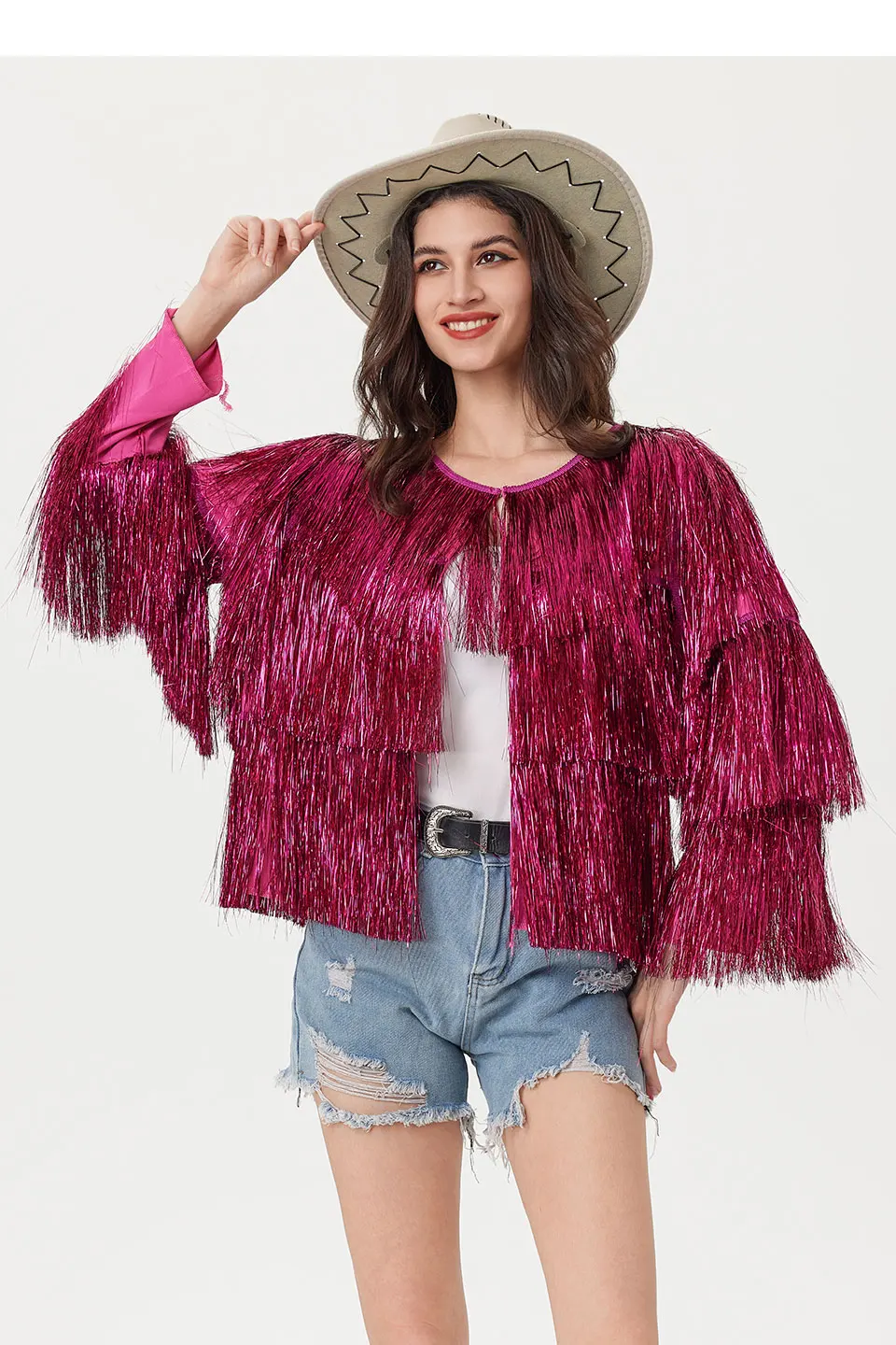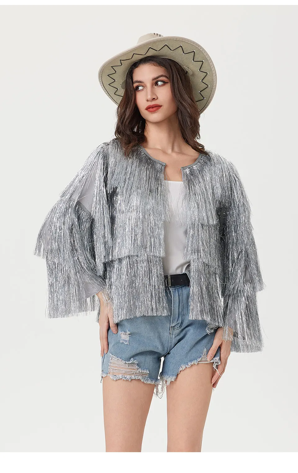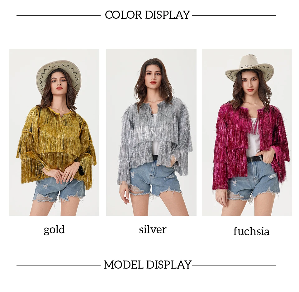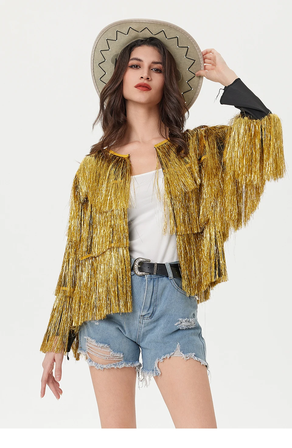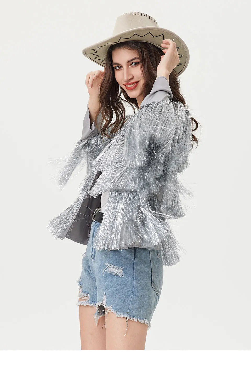Jacket Women Coat Club Coat Long Sleeve Trendy Fashion Sequins Tassel Jacket festival open front carnival