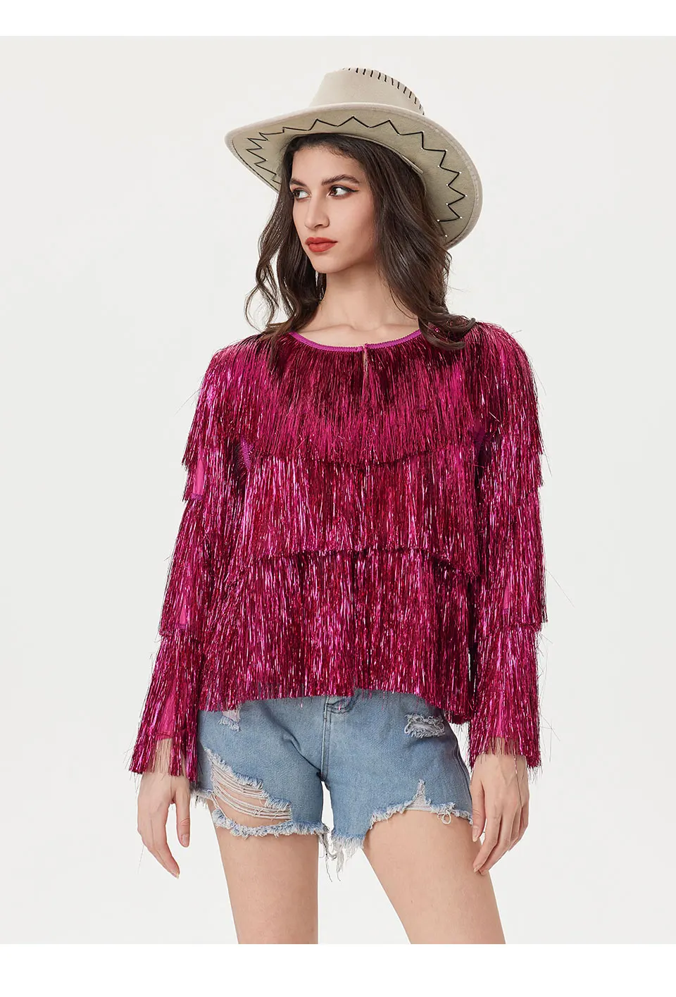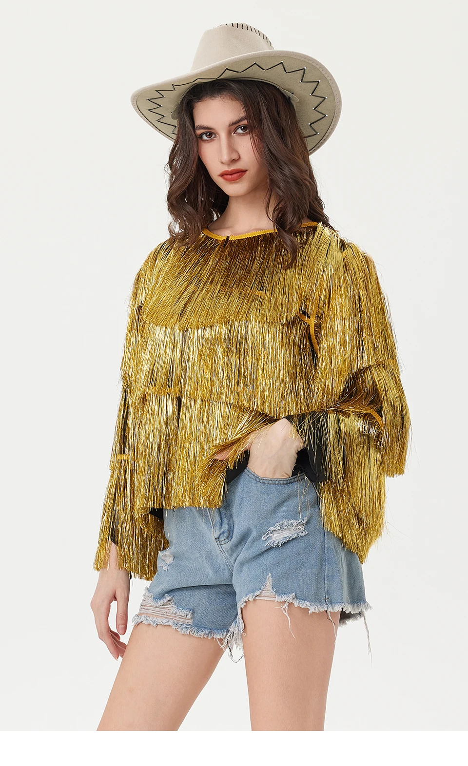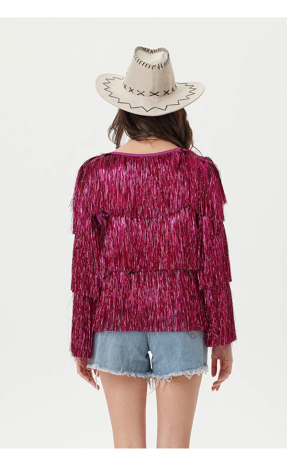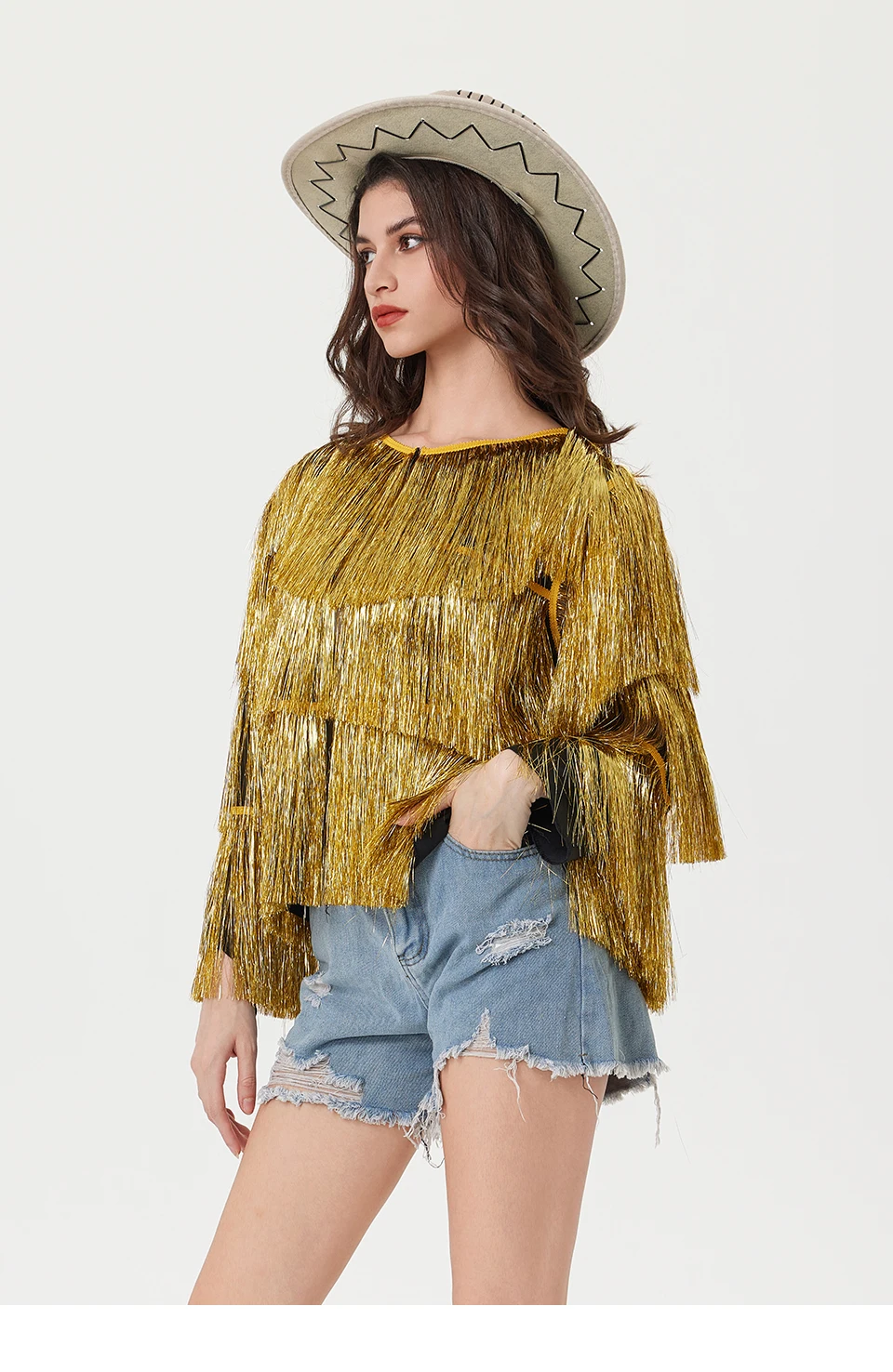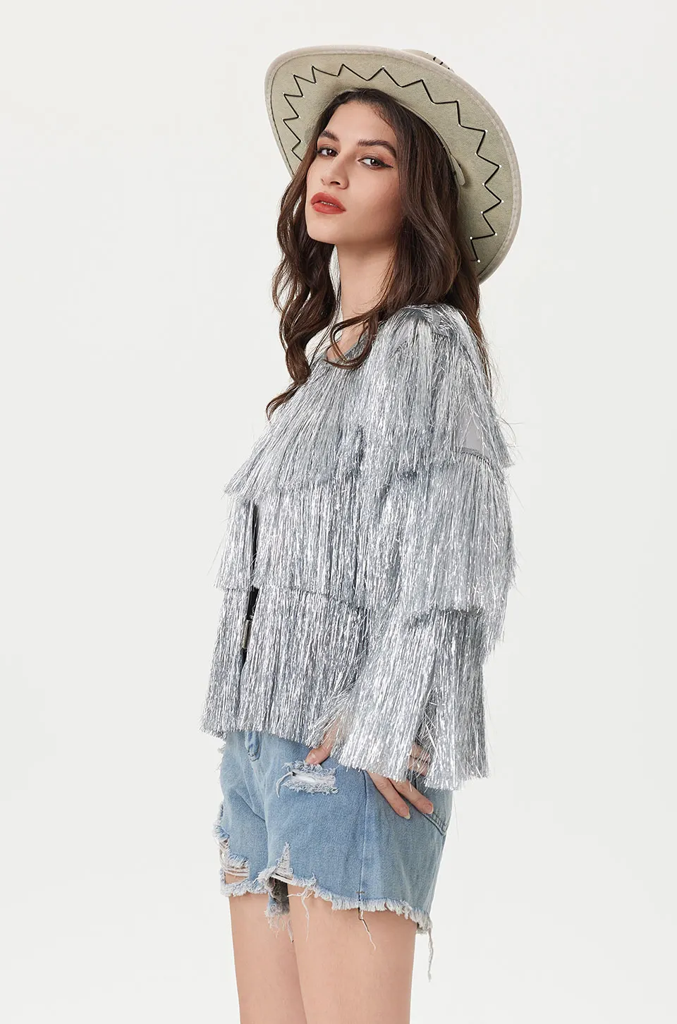 Jacket Women Coat Club Coat Long Sleeve Trendy Fashion Sequins Tassel Jacket festival open front carnival