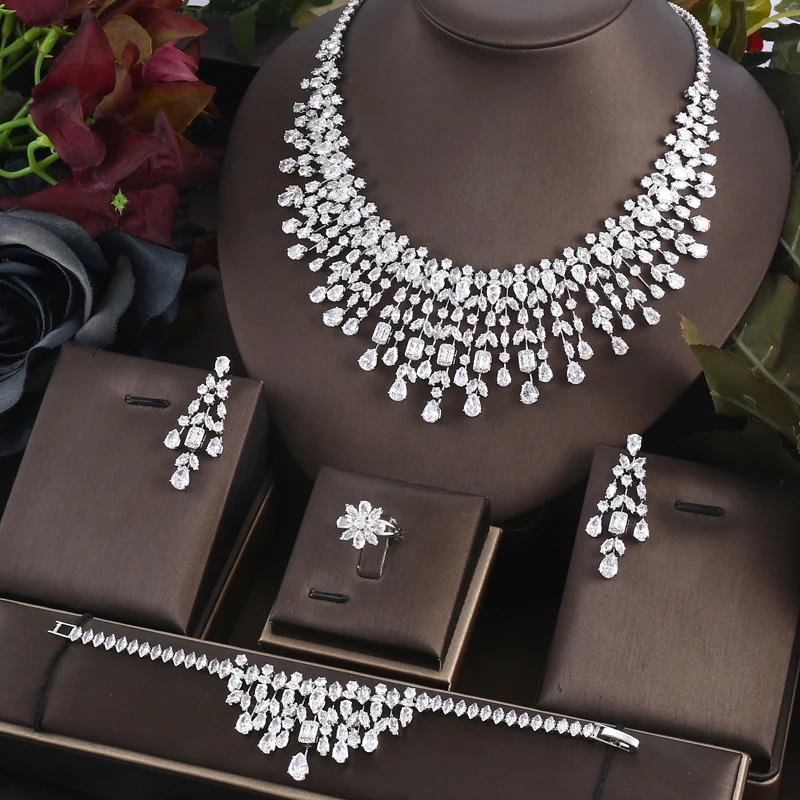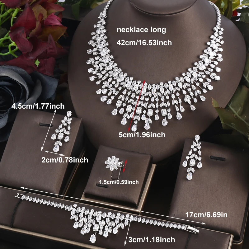 4pcs Bridal Zirconia Full Jewelry Sets For Women Party, Luxury CZ Crystal Wedding necklace sets