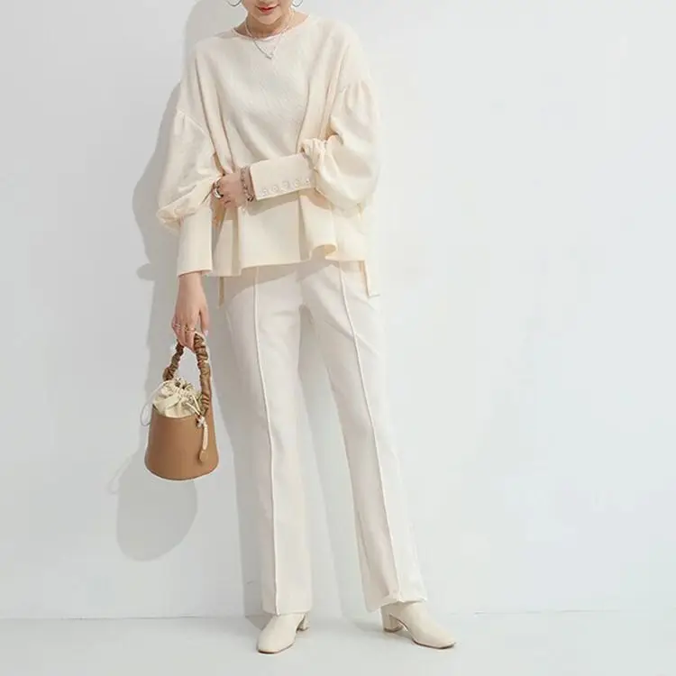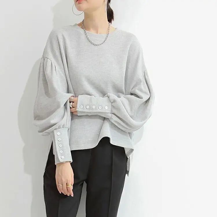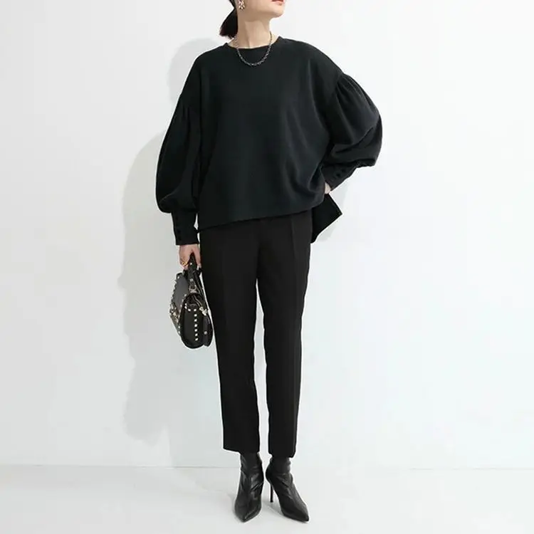 Elevate your everyday wardrobe with this refined long-sleeved top, designed for effortless sophistication. Featuring gracefully draped lantern sleeves and a relaxed silhouette, this piece seamlessly transitions from casual outings to layered styling. The timeless round neckline and understated solid palette ensure versatile coordination with any ensemble, while the generous fit provides comfort without compromising elegance. An essential addition for the modern woman seeking understated style.