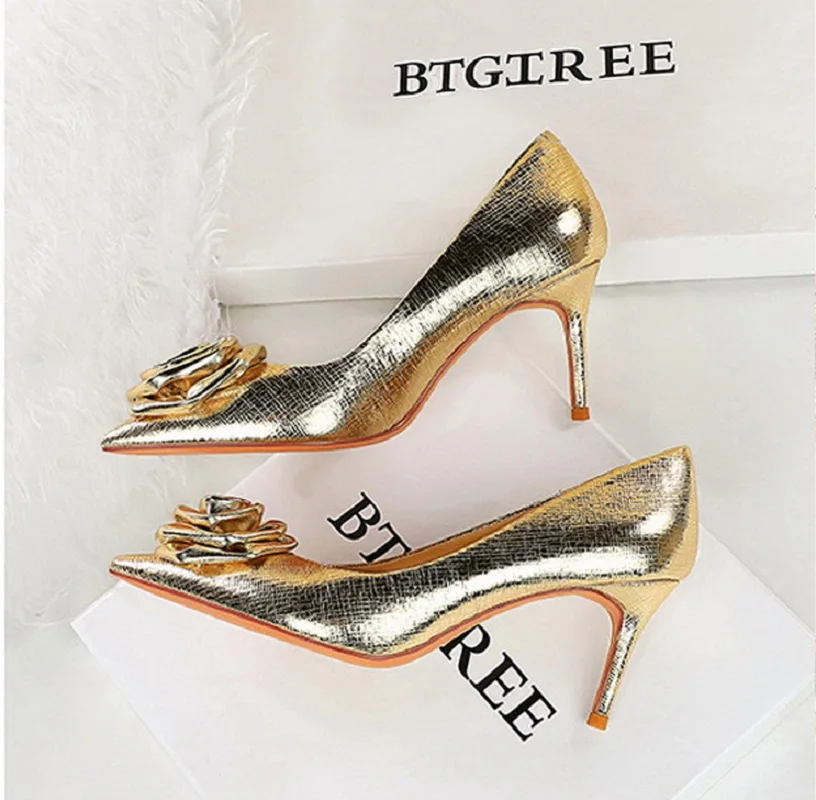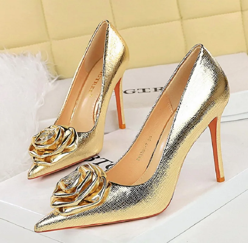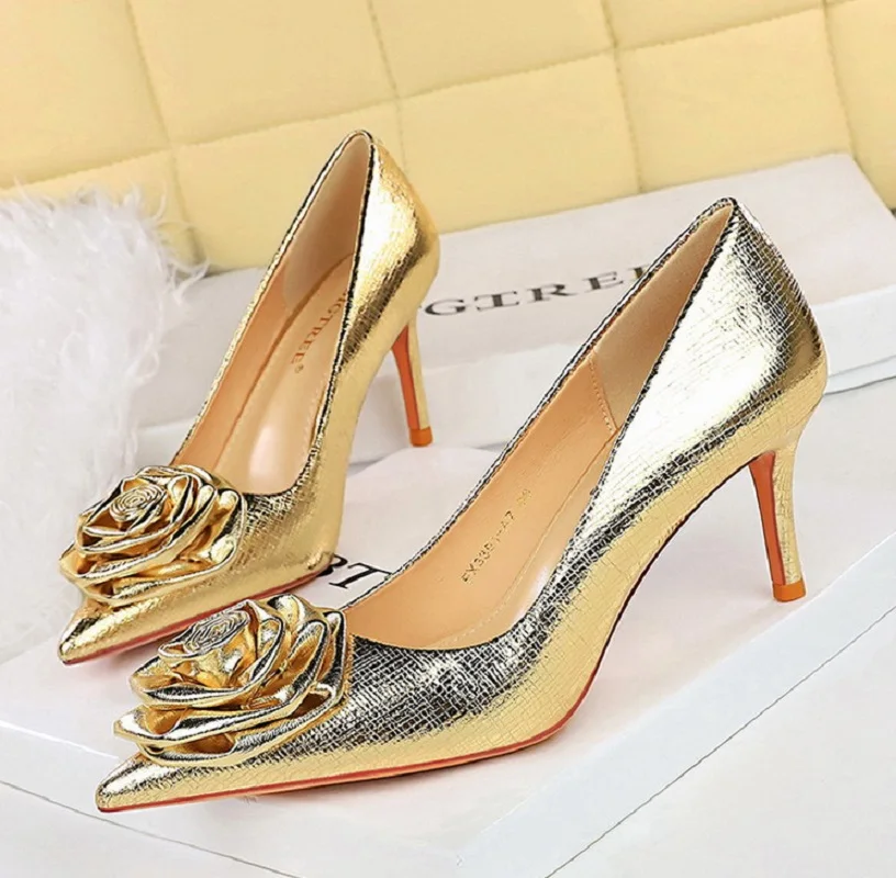 Flowers Women Pumps Sexy Pointed Toe Thin Heels Wedding Party Shoes