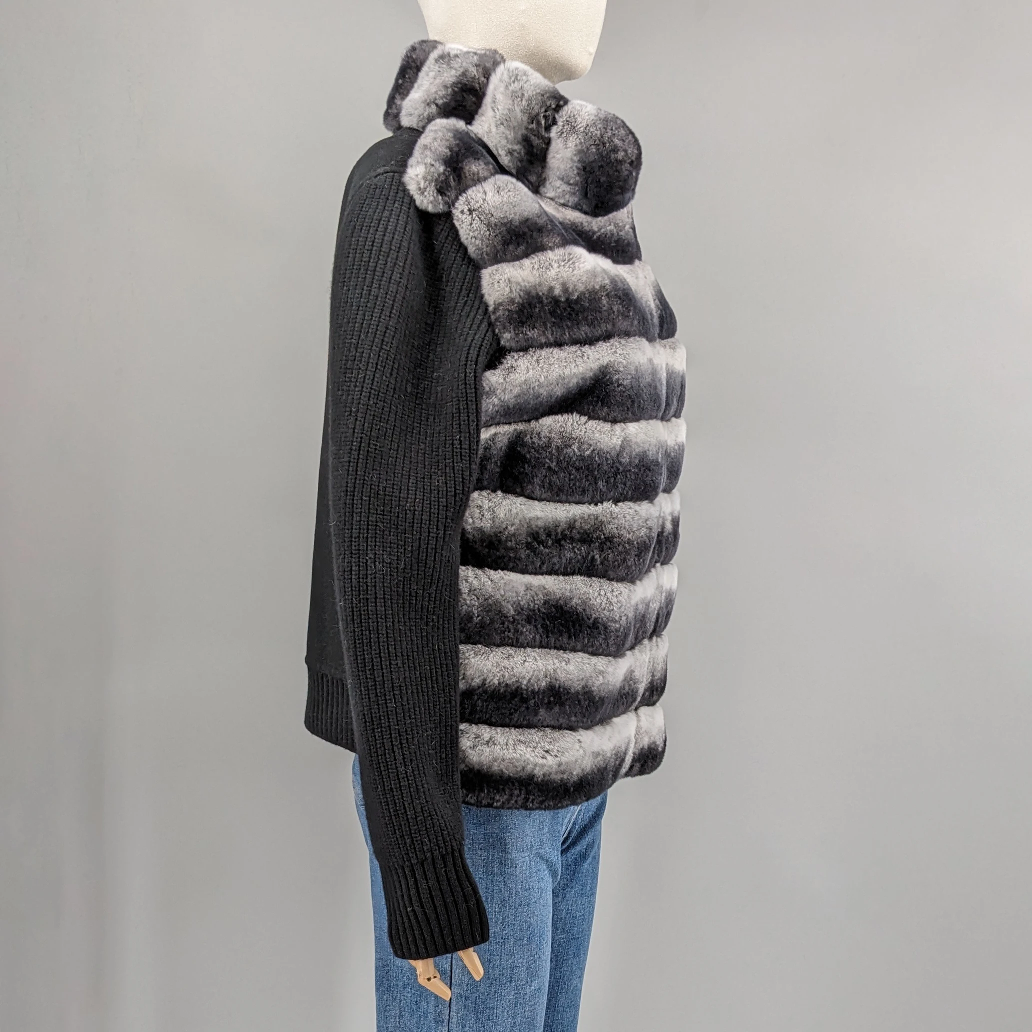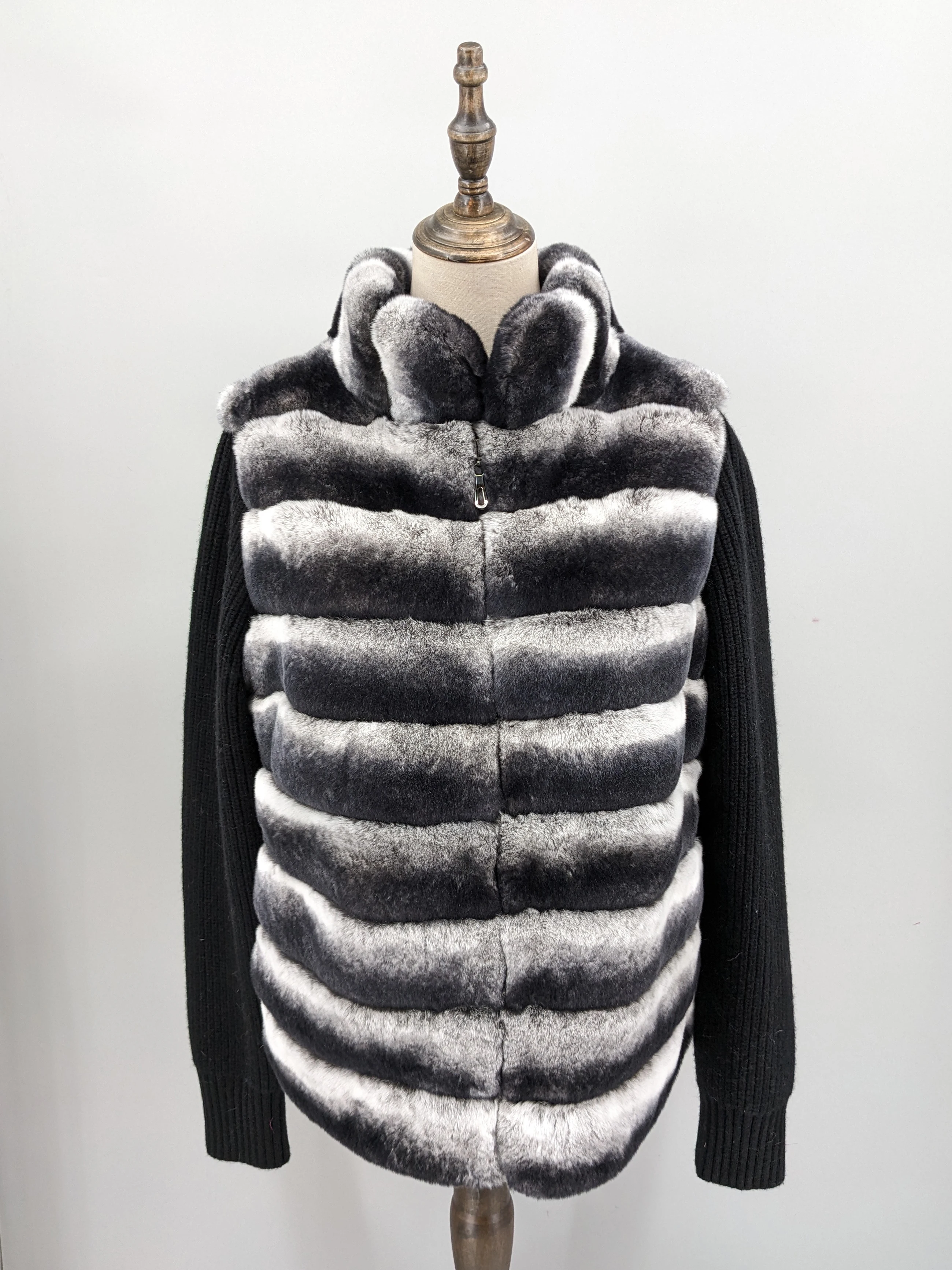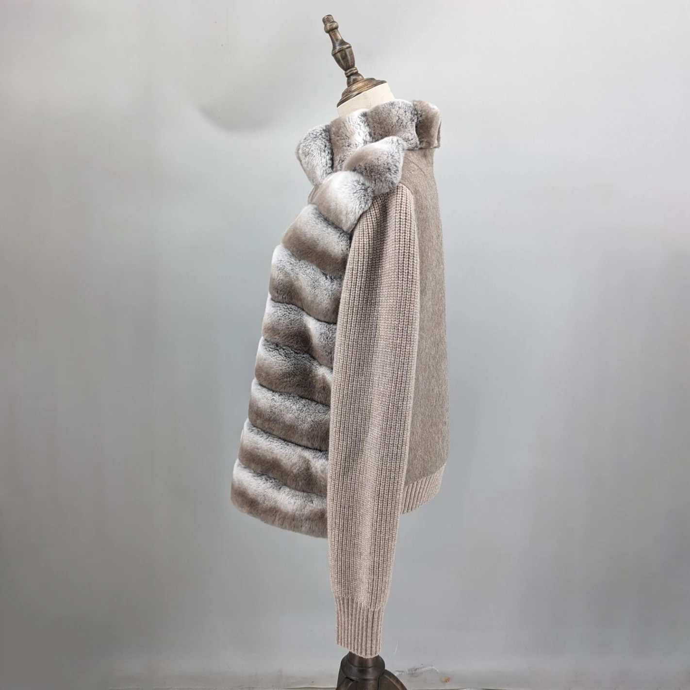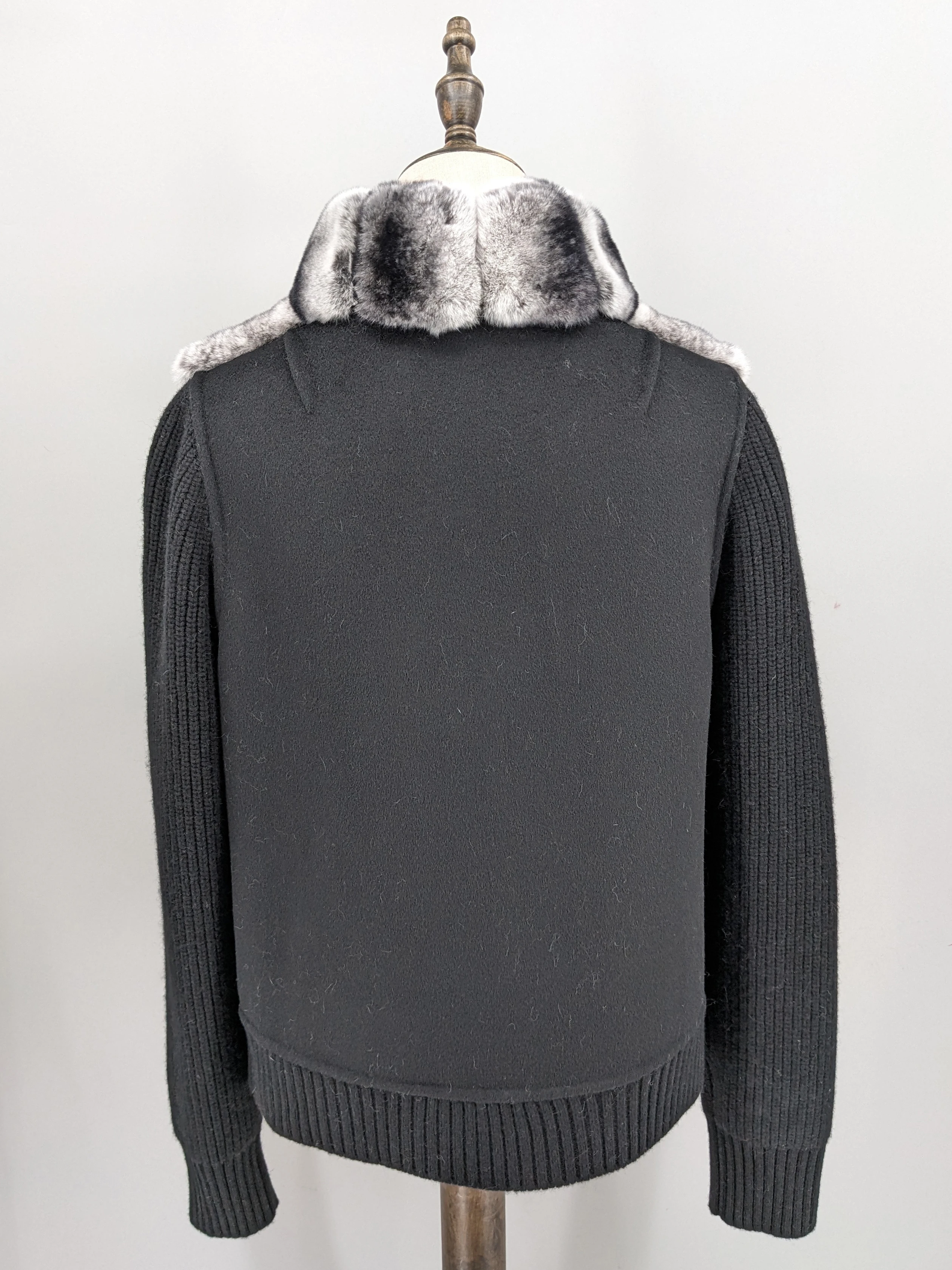 Featuring genuine fur combined with refined knit construction, this sophisticated jacket delivers exceptional warmth without compromise.