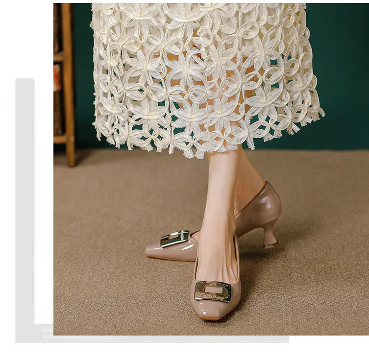 Square Head Kitten Heels Stiletto Women's Shoes Patent Leather Light Mouth French Kitten Heel Shoes