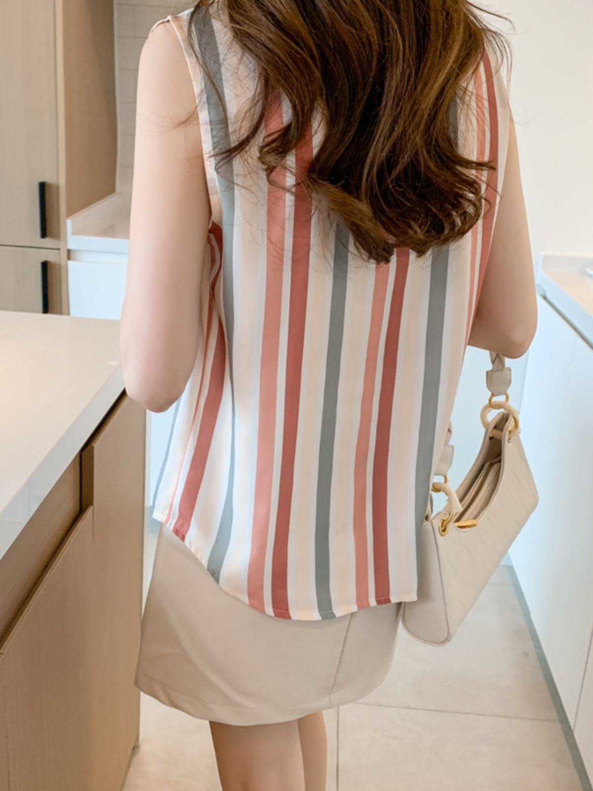 Stripe Women Blouse Casual Shirts Summer Female Clothing Sleeveless El