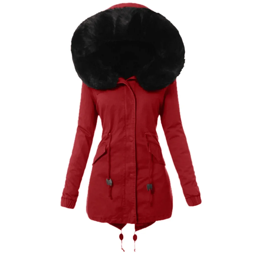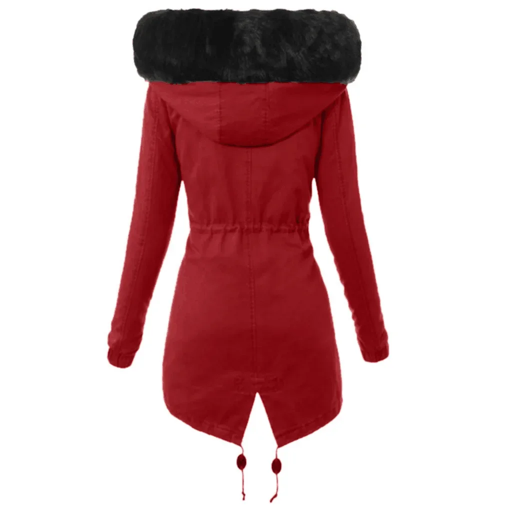 Warm Cotton Jacket with Zipper And Hood Women's Fashionable Slim Fit C