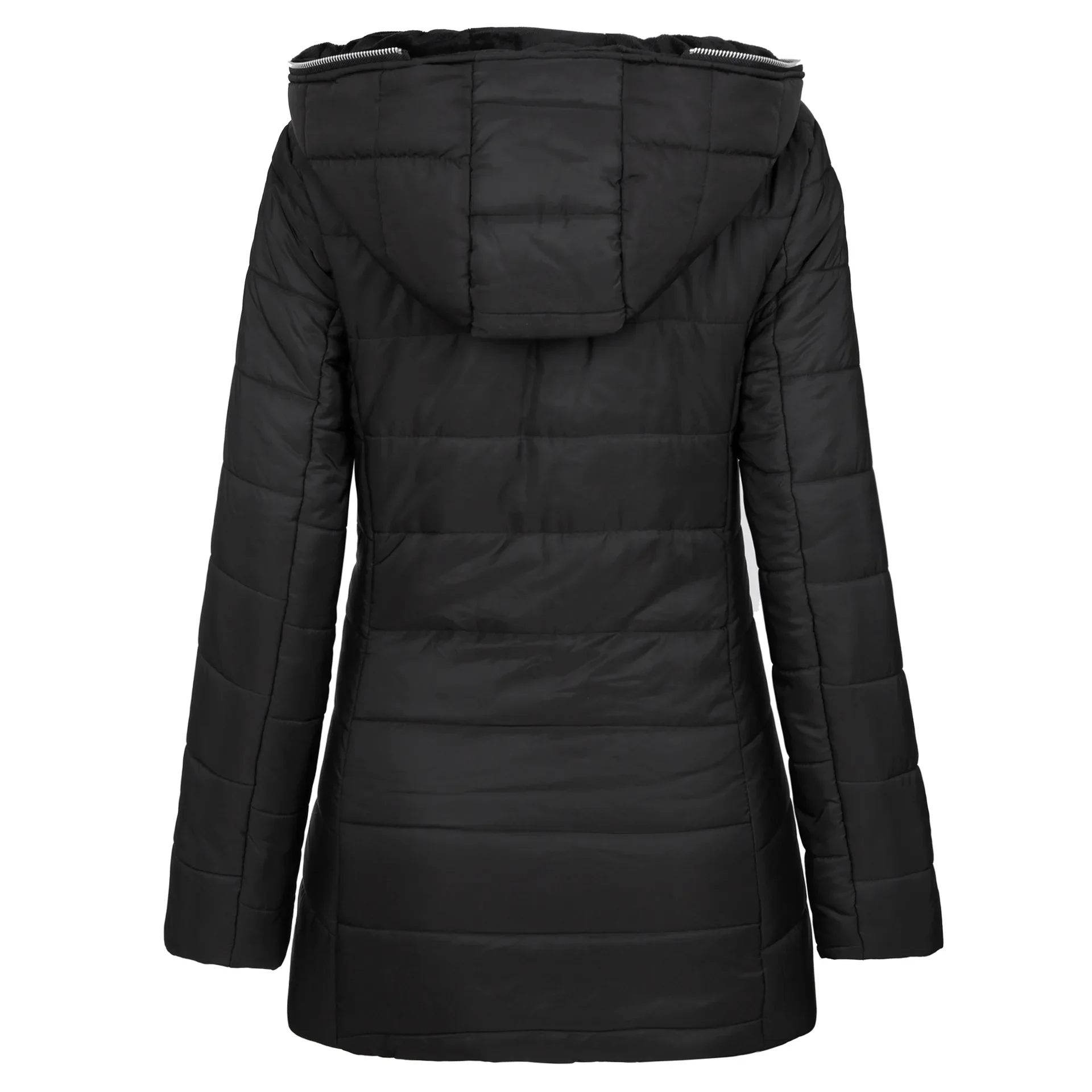 Embrace winter elegance with this refined hooded jacket, expertly crafted for the modern woman. Featuring a flattering medium-length silhouette, premium cotton padding, and cozy fleece lining, this zip-up coat delivers exceptional warmth without compromising on style. The long sleeves and protective hood ensure complete coverage during cold months, while the sophisticated design transitions seamlessly from casual outings to polished occasions. A timeless investment piece that combines comfort with understated luxury.